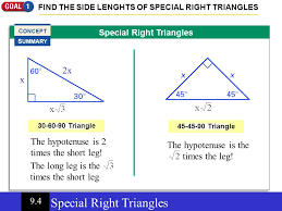 How do you solve special right triangles? Additionally, all multiples are a. How to find the hypotenuse in special right triangles? Jun 26, 2020 · choose the proper type of special right triangle. Then we will use the pythagorean theorem to find the remaining side length. Using the pythagorean theorem, finding the missing side of a triangle is pretty simple and easy. Learning these triangles will lay a good foundation for you. You can also use the pythagorean theorem , but if you can see that it is a special triangle it can save you some calculations. Rather than always having to rely on the pythagorean theorem, w. 1 hr 6 min 1. See full list on calcworkshop.com Special right triangles are triangles whose sides are in a particular ratio, known as pythagorean triples. The special right triangle calculator solved your triangle!